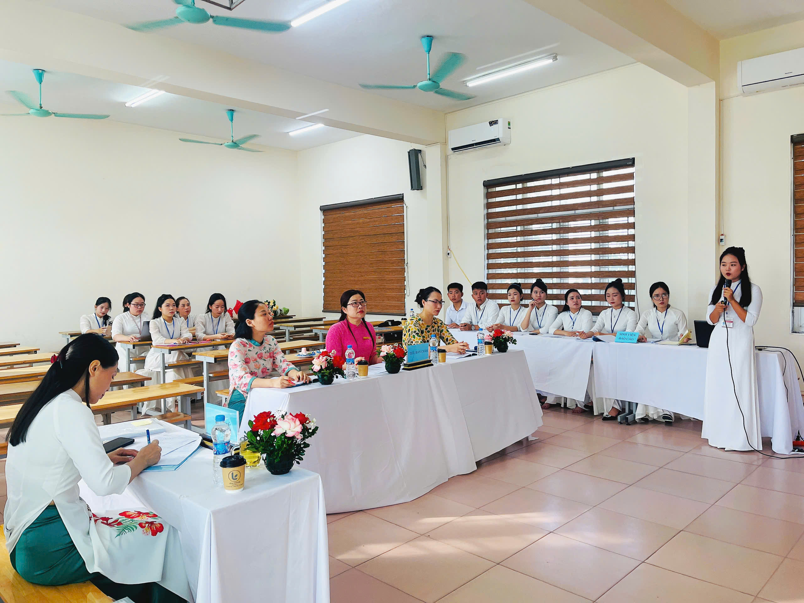 Không chỉ chú trọng nội dung, các nhóm sinh viên còn thể hiện sự chuẩn bị kỹ lưỡng thông qua phong cách trình bày tự tin, mạch lạc và khả năng phản biện thuyết phục. Nhiều tiểu luận được hội đồng ghi nhận cao về tính thực tiễn, chất lượng khảo sát cũng như hình thức thể hiện chuyên nghiệp.